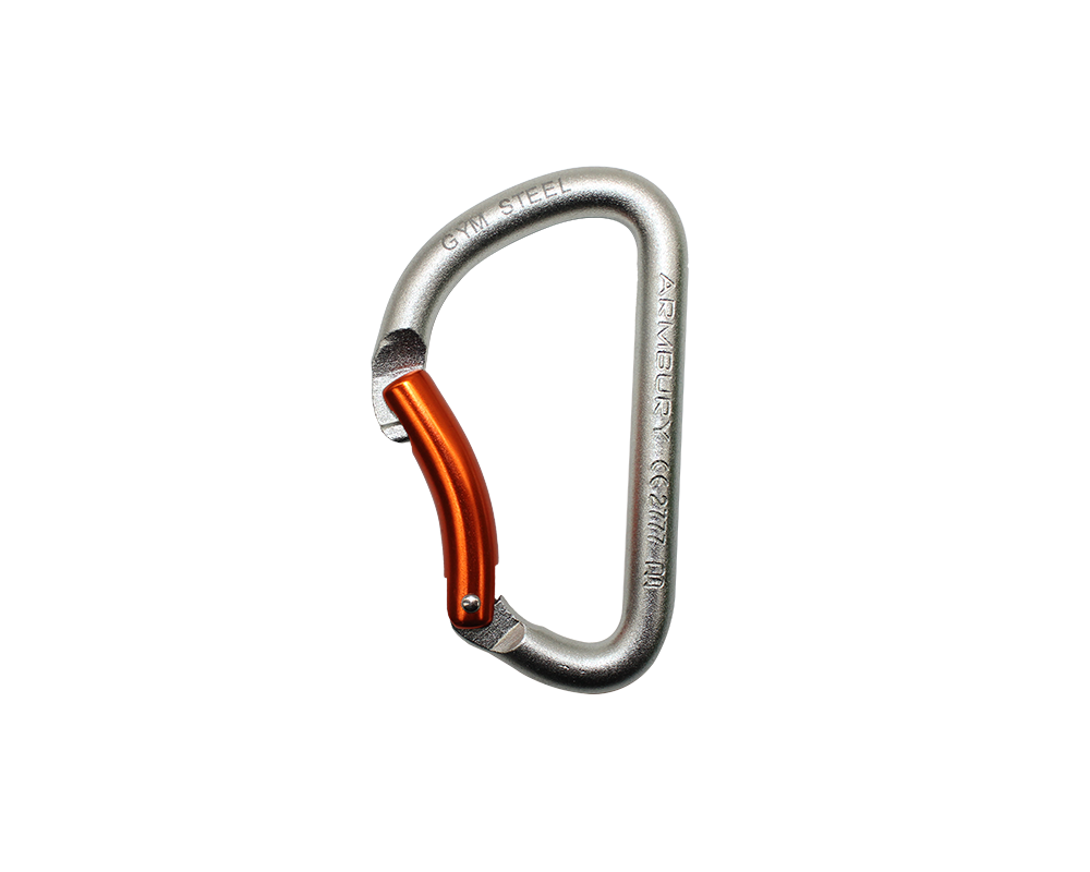 A high-strength steel carabiner engineered for use in both indoor climbing gyms and high