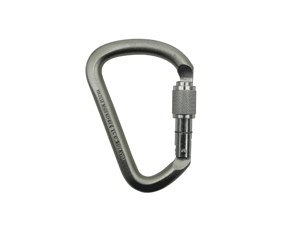 D-shaped steel carabiners available with screw lock gate and triple lock gate. Catch-free nose for smooth clipping and unclipping. Zinc-plated finish prevents rust from moist environment. Asymmetric shape significantly increases the strength. Ideal for industrial safety and rescue.