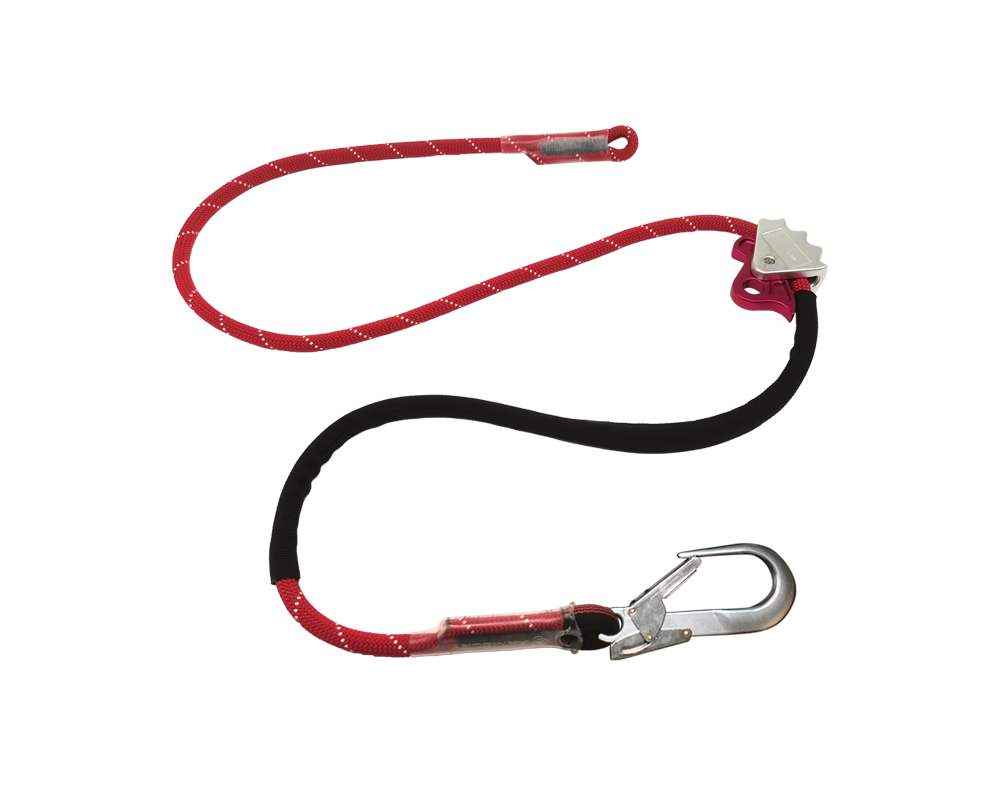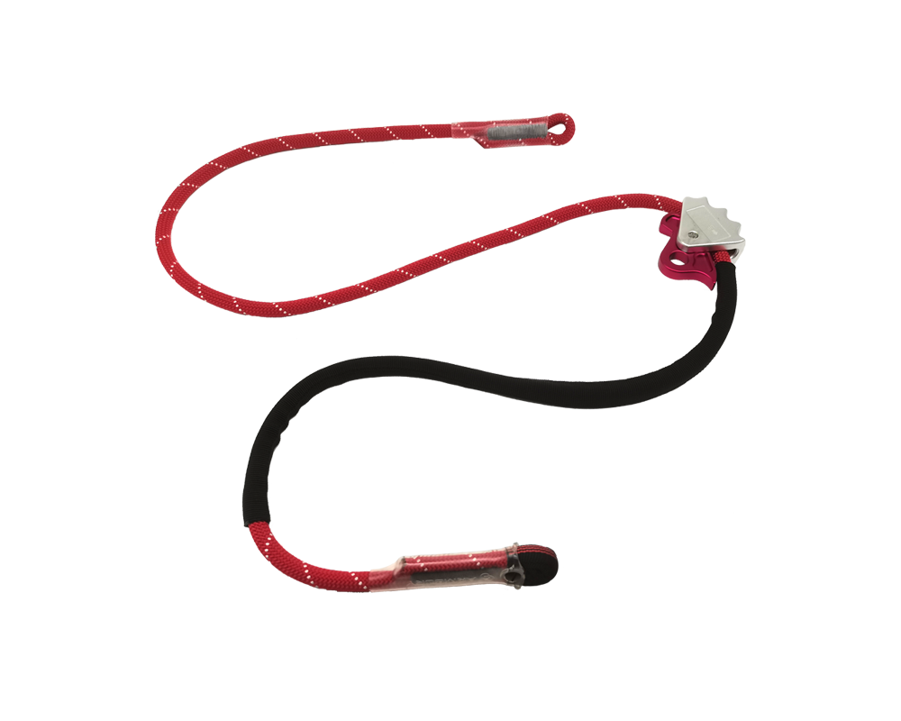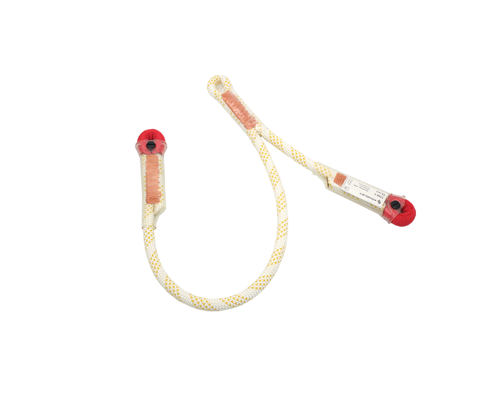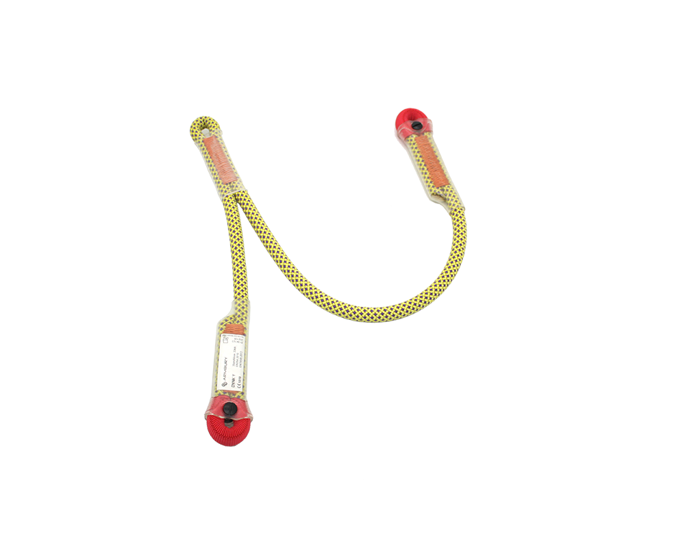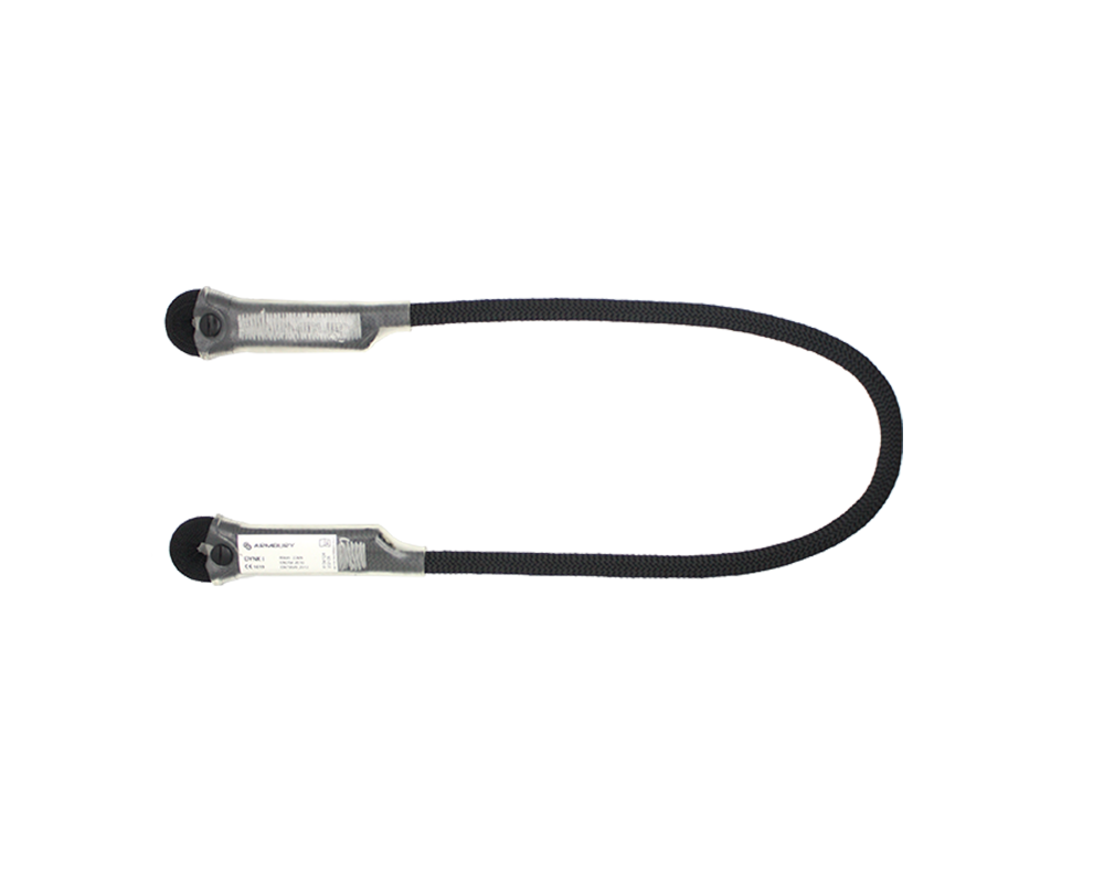 Lanyard for connecting and anchoring device made from 11 mm dynamic rope.