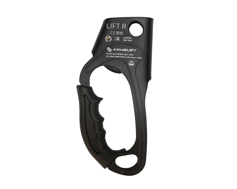 Light alloy hand ascender with ergonomic rubber grip for rope ascent. The stainless steel cam insures a high resistance to wear and tear. Eyelet at top for clipping a caranier. Very simple and quick manipulation. Available in models for left hand and right hand. Ideal for climbing, rescue and rope access.