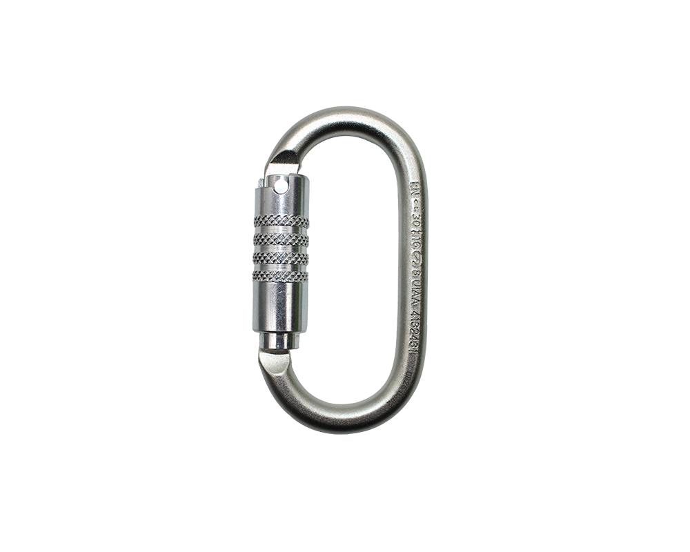 Oval shape steel carabiners available with screw lock gate and triple lock gate. Catch-free nose for smooth clipping and unclipping. Zinc-plated finish prevents rust from moist environment. Designed to be used with mobile devices like pulleys, ascenders and descenders.