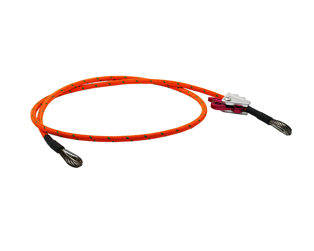 Made with TREER 12 climbing rope, grizzly spliced with tight sewn eye for carabiner