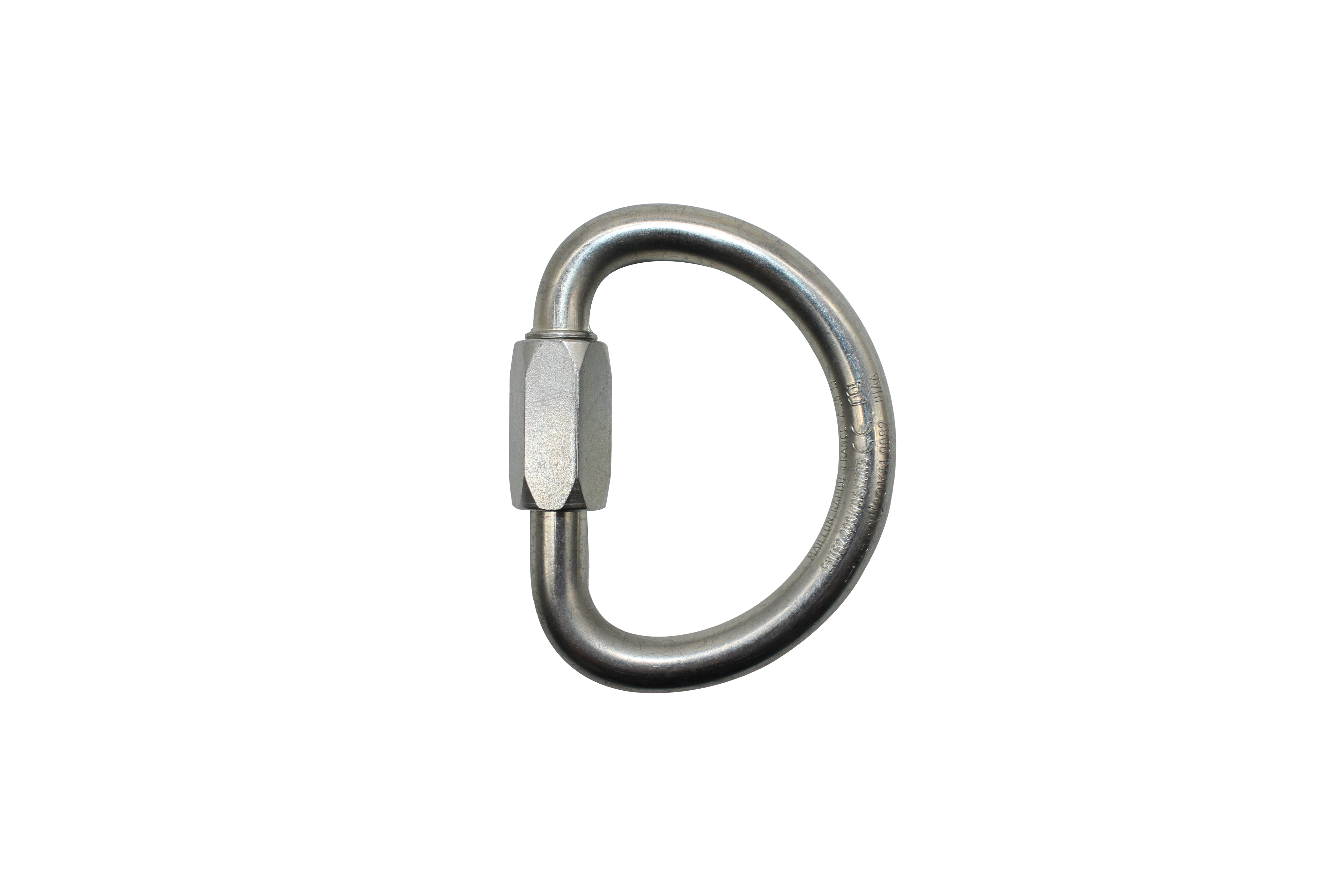 D-shaped steel carabiners available with screw lock gate and triple lock gate.