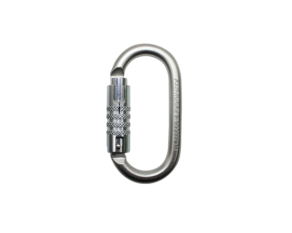 Oval shape steel carabiners available with screw lock gate and triple lock gate.