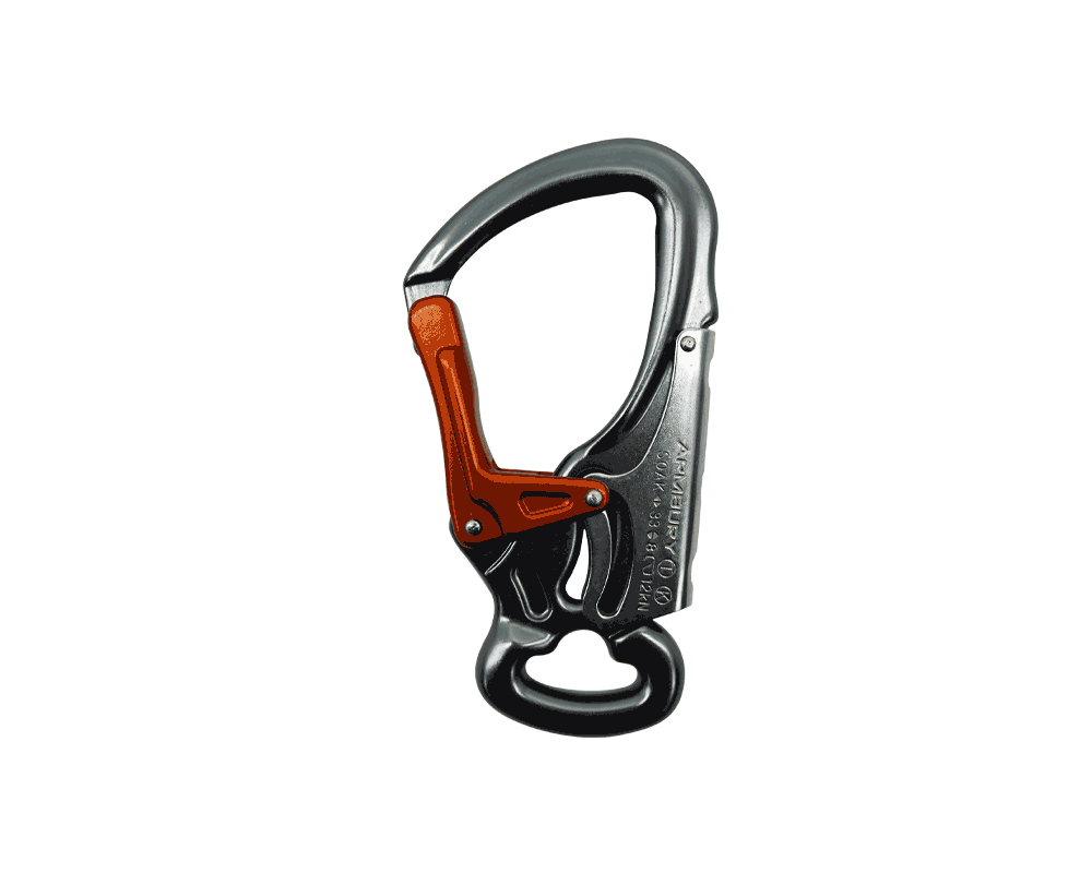 Aluminum alloy connector with large opening up to 60cm. Double gate system ensures
